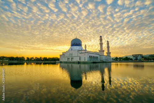 Kota Kinabalu City Mosque Also Known As Masjid Bandaraya The Beautiful Floating Architecture During Sunrise With Dramatic Golden Light And Dramatic Cloud Formation Buy This Stock Photo And Explore Similar Images